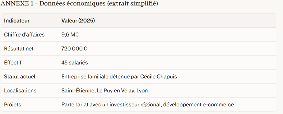 ANNEXE 1 – Données économiques (extrait simplifié)