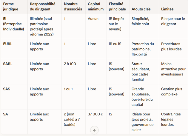 Comparer plusieurs structures juridiques possibles au cas d’espèce (EI, EURL/SARL, SAS, SASU SA…).